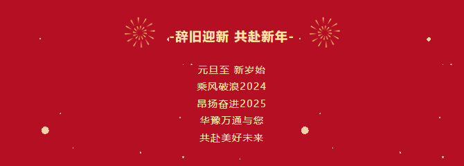 在2025年元旦到來(lái)之際,我謹(jǐn)代表華豫萬(wàn)通公司,向關(guān)心和支持華豫萬(wàn)通發(fā)展的各級(jí)領(lǐng)導(dǎo)和各界朋友、合作伙伴、廣大客戶,以及工作在一線的所有員工,致以誠(chéng)摯的祝福和深深地感謝!未來(lái)之路,我們同行,把握趨勢(shì),乘勢(shì)而上,聚勢(shì)共贏,馳騁未來(lái)。
