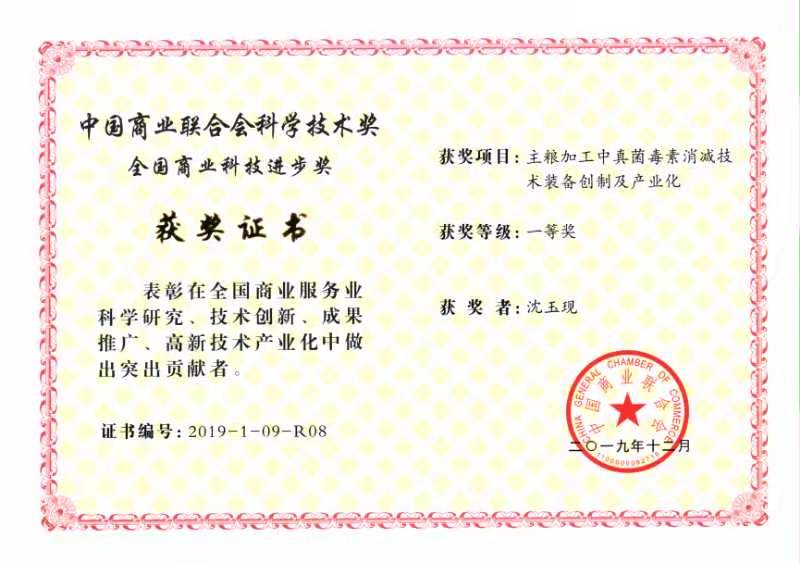 喜報傳來!在中國商業(yè)聯(lián)合會組織的2019年全國商業(yè)科技進(jìn)步獎的評比中,魯山縣華豫萬通工程技術(shù)有限公司的糧食真菌毒素消除技術(shù)裝備生產(chǎn)項目榮獲一等獎,這是對華豫萬通多年來一直追求創(chuàng)新的一次積極肯定和極大的鼓勵。