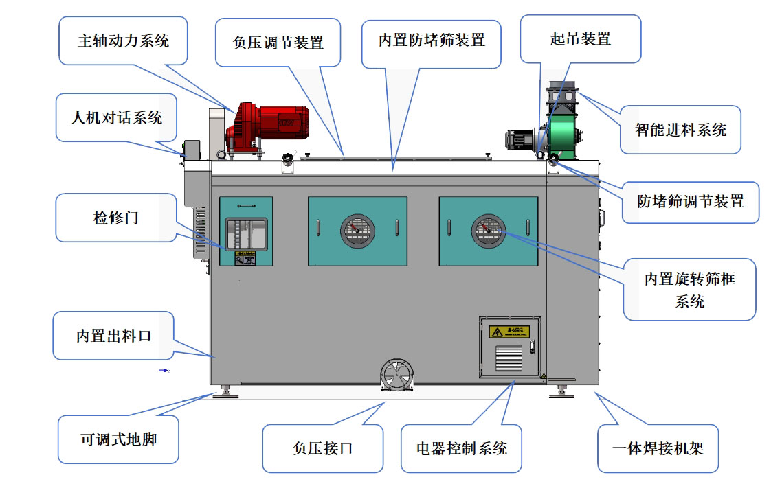 3、篩孔防堵系統(tǒng):可實(shí)現(xiàn)對設(shè)備篩孔不間斷的清里,防止篩孔堵塞。